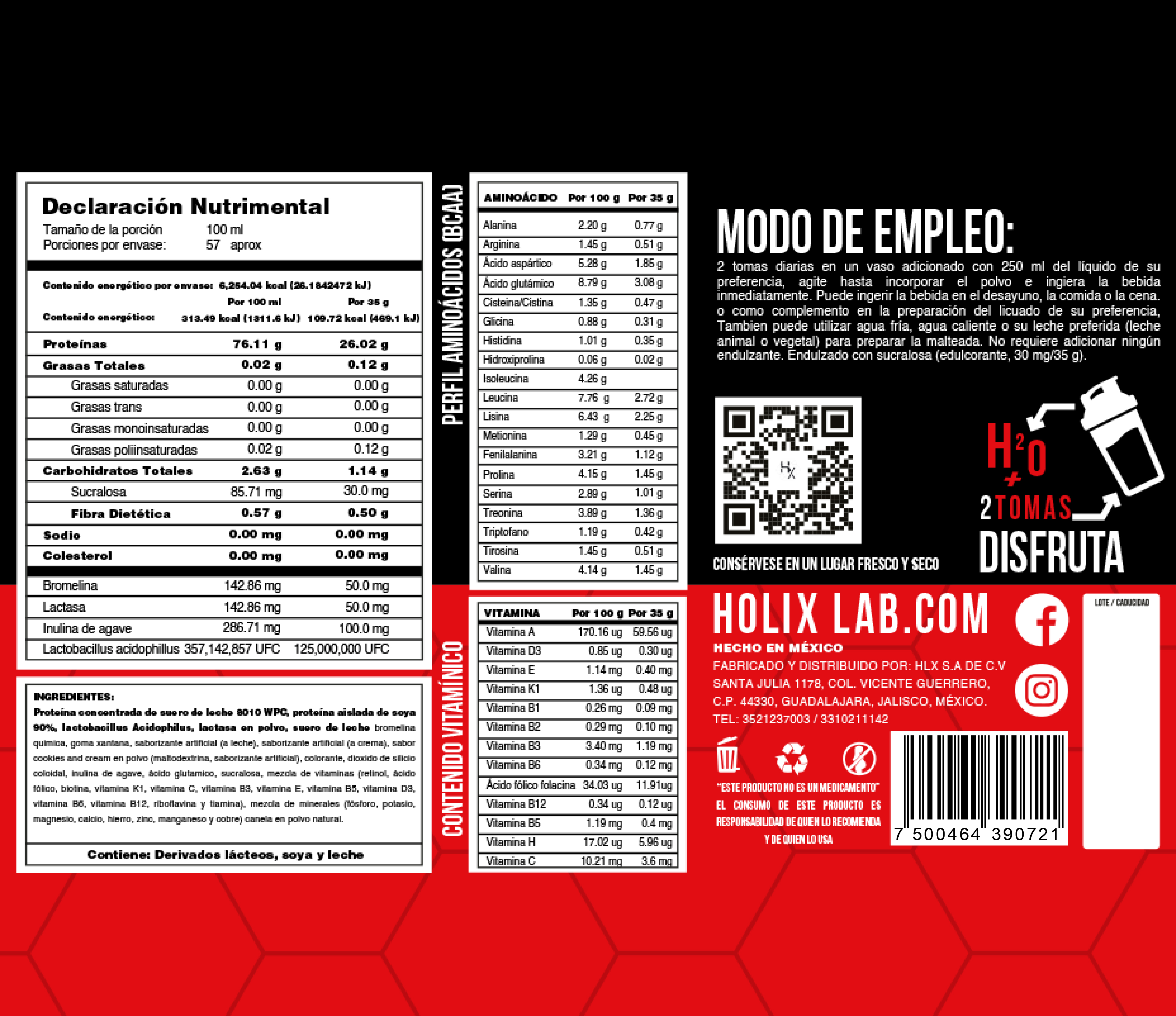 Se puede preparar en licuadora, adicionado de los componentes de su preferencia (frutas, huevo, fibra, etc.) Disfrute dos veces al día; Preferentemente después de cada rutina de ejercicio o como complemento alimenticio durante la ingesta de su alimentación diaria. Preferentemente durante el desayuno y la cena.
